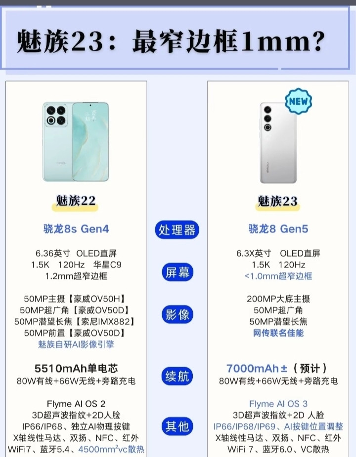 1:手机圈近日被一枚深水炸弹引爆。魅族科技正式揭晓了年度旗舰魅族23的神秘面纱。这款承载着无数魅友期待的机型,终于在万众瞩目中曝光了核心参数。它带着骁龙8 Gen5的强悍性能,携着近7000mAh的超大电池,更以魅族史上最窄边框的姿态强势登场。这不仅是魅族的一次产品迭代,更像是一场关于工艺与性能的极限挑战。