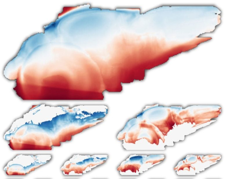 神经科学家跟踪了斑马鱼大脑中两个相邻区域(分离用红色和蓝色标出)数千个基因的抒发模式。他们写说念:“与队伍不同,队伍有着明确的引导链,最高层是将军,而发育经由零落中央组织者。发育经由中莫得将军。在发育早期,细胞通过局部信号变成高超耦合的单位。跟着组织助长和细胞扩散到信号范围以外,这些局部单位会分裂成亚单位,并剿袭其祖细胞的情景。” 图片起原:Zador实验室/冷泉港实验室