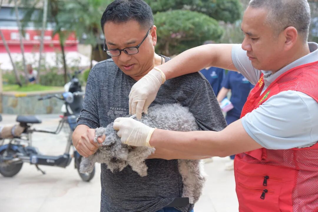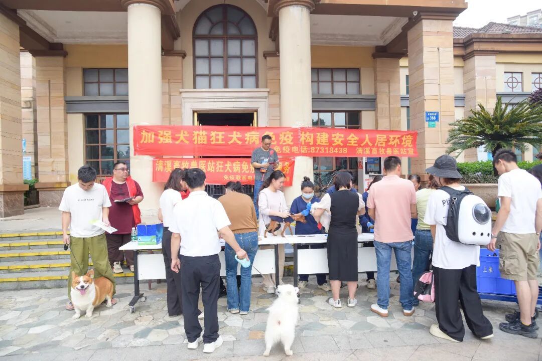 清溪镇农技中心联接宠健动物病院,走进御泉香山住宅小区,开展犬猫狂犬病疫苗免费接种举止,将便民劳动信得过送到居民家门口。