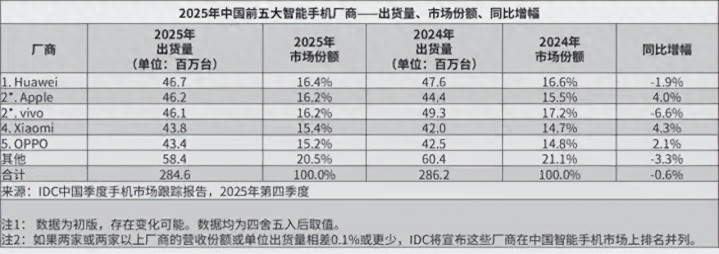 在手机市场中,2025年的中国市场风云变幻,据IDC报告显示,整体出货量微微下降了0.6%,整体市场略显疲态。