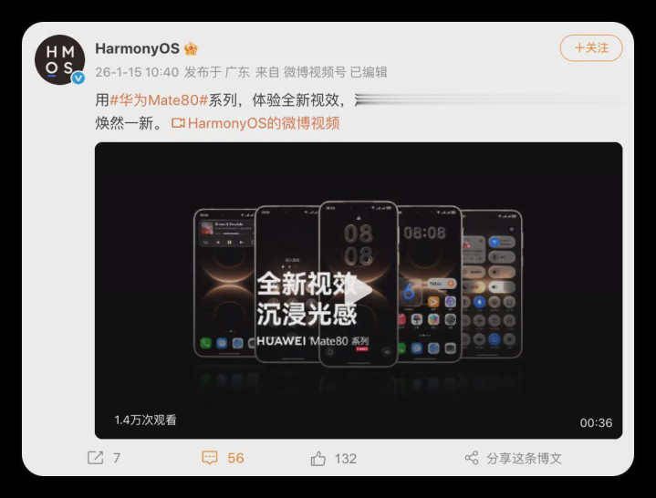 华为HarmonyOS官方微博突然发布的那段视频,Mate 80系列作为演示机型,展示着鸿蒙6的核心视觉革新——沉浸光感视效。这可不是简单的换个外观,华为从底层逻辑上对鸿蒙的视觉语言进行了重构,给系统来了个大改造。