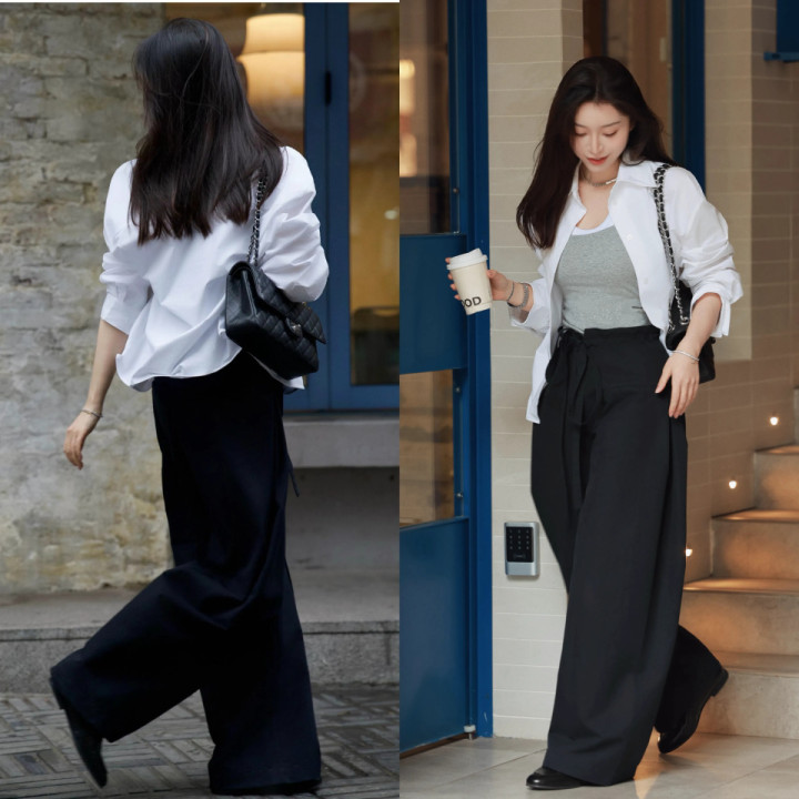 阔腿裤的上风其实也很显著。还能让你不劳作不费时就不错穿出唐突感。宽广穿它出街上班、约聚皆适配,多种场景可运用。
