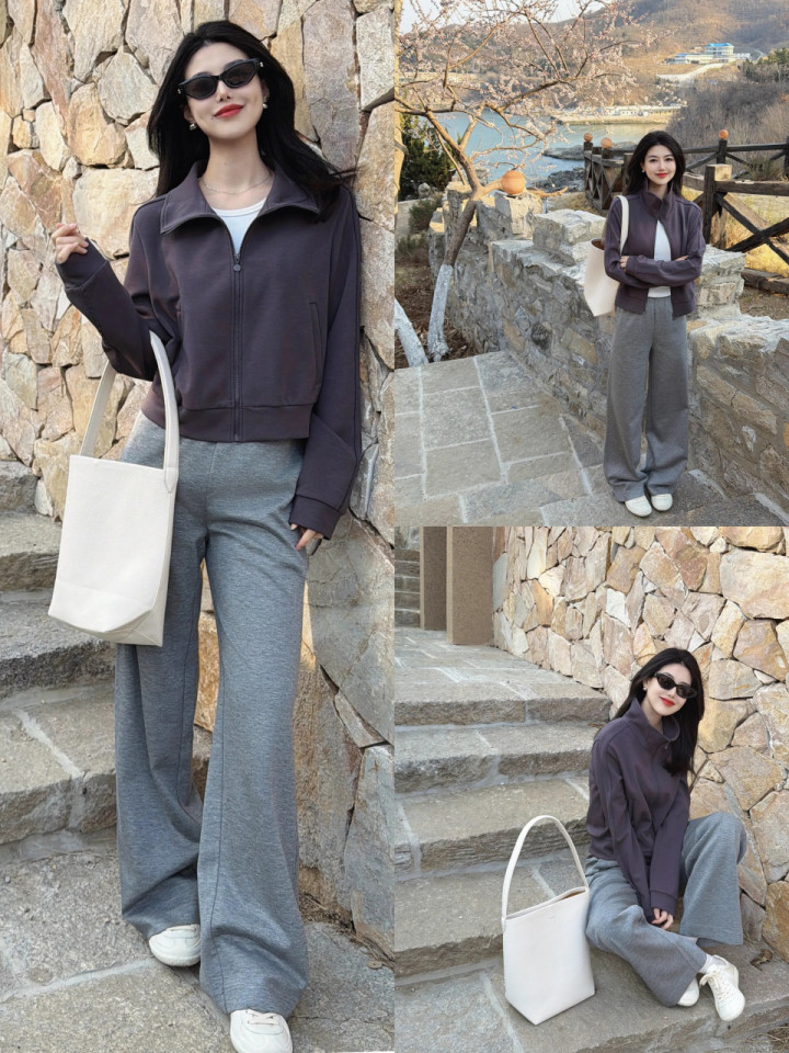 或是选拔用灰色的失业直筒阔腿裤配上翻领卫衣,叠穿白 T 恤,这么的穿衣打扮检朴好意思丽,宽广出去旅游拍照竟然很出片。