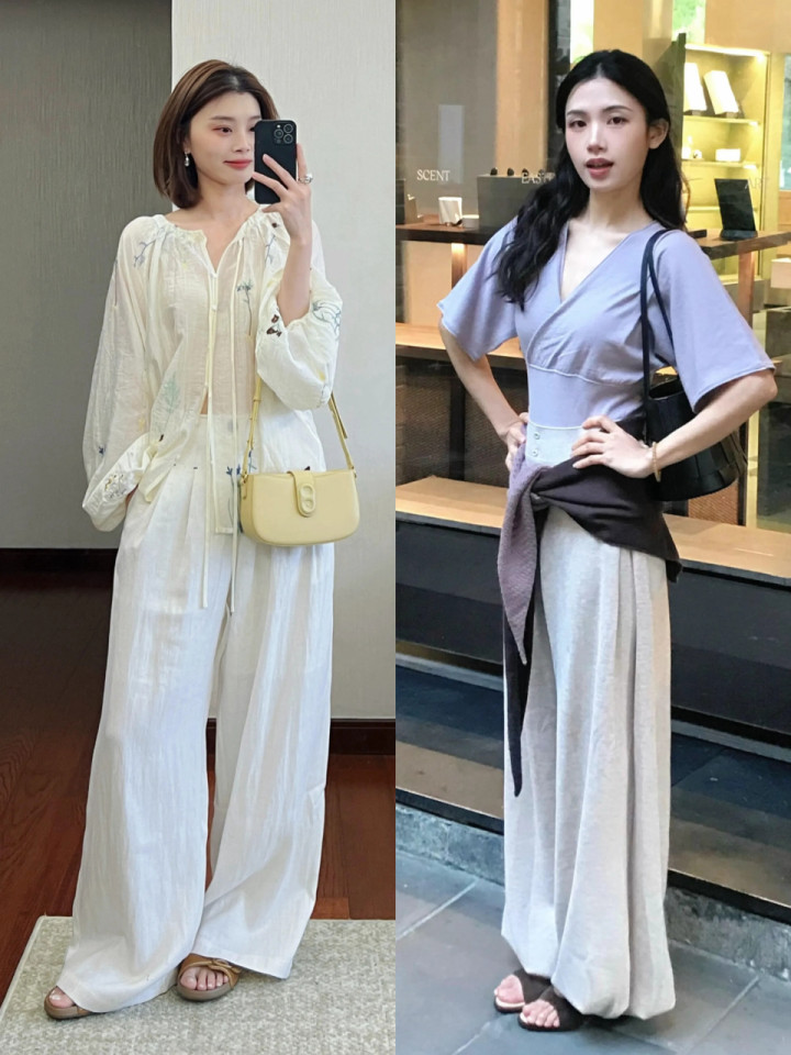 每个东谈主的躯壳比例不同,气质不同,选拔的阔腿裤当然有相反。要是偏疼慵懒感,可选白色棉麻阔腿裤,配上薄款的灯笼袖衬衫,既清楚又慵懒。