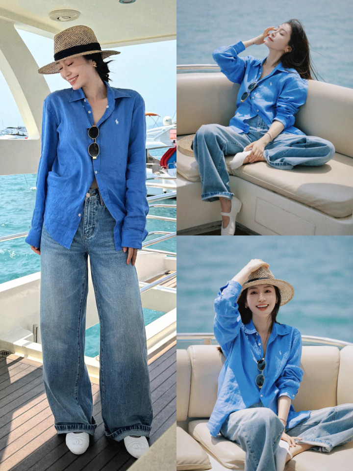 当你无意分时出去旅游度假,不妨换上一件蓝色的棉麻衬衫,配上蓝色牛仔直筒阔腿裤,脚上穿了一对白色的平底单鞋,这么的穿衣打扮既好意思丽又宽广,戴上一顶很有氛围感的凉帽,拍出来的像片就很出片,和煦又平静。