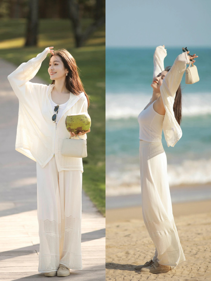 在这百鸟争鸣的季节出去旅游时,念念要造型更出片,不错径直选拔检朴的白衬衫配上白色的西装直筒阔腿裤,脚上踩着一对玄色的高跟凉鞋就够,再戴上一顶凉帽,氛围感径直拉满。这么的穿搭不挑东谈主,不挑肤色,谁穿谁悦目。