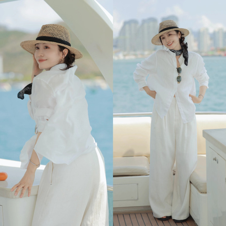 Tips②:白衬衫配白色西装阔腿裤,利落有气质