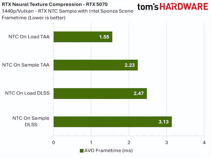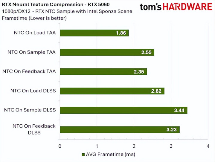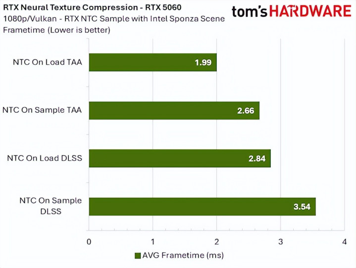 测试团队同期明确,测试场景仅包含基础前向渲染与抗锯齿经过,本体3A游戏有广泛不受NTC影响的渲染通说念,因此这项本事在本体游戏中的相对性能损耗,会比测试数据更低。