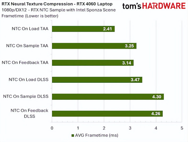 为适配不同层级的硬件,NTC在DirectX12接口下提供三种开动模式,另一主流接口Vulkan因无对应配套功能,仅撑执其中两种(不撑执Inference on Feedback )。