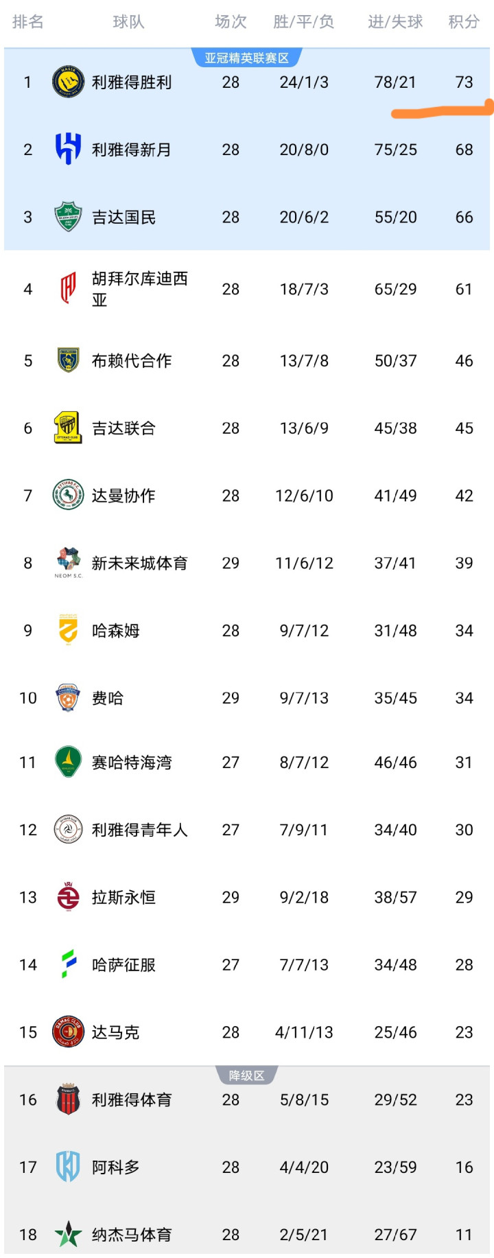 不错看到利雅得奏效队取胜之后,积分高潮到了73分,连接领跑,还是朝上第2的利雅得月牙队5分之多。利雅得奏效队夺冠地点一派大好。