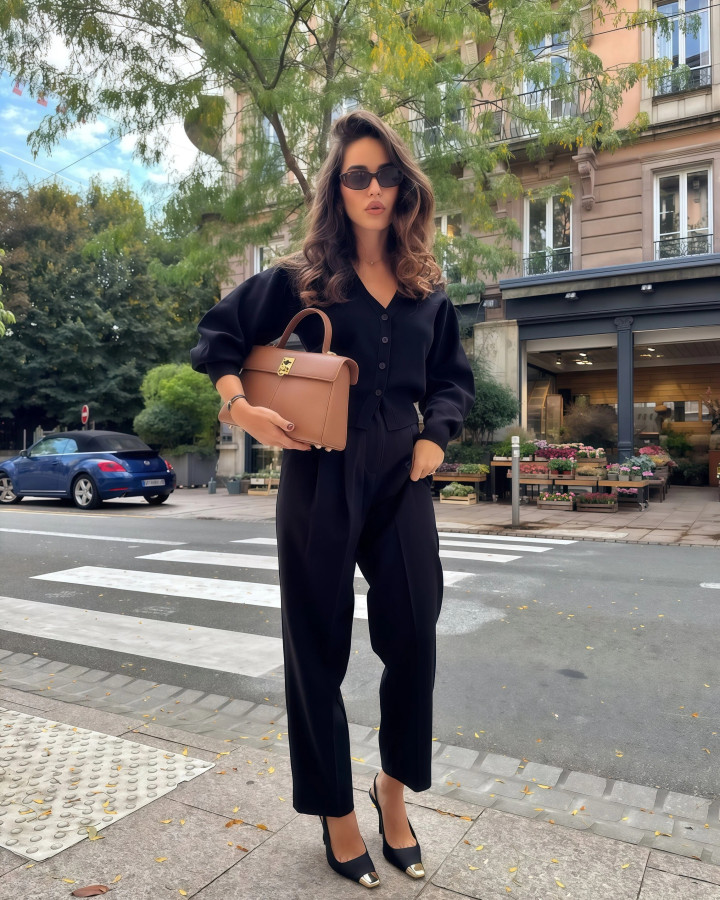像芭蕾鞋这种偏“魁岸”感的单品,好多东谈主齐不会念念着配九分裤,可没念念到,二者的相逢,果然产生了让东谈主有时的好意思丽感,干练的九分裤,刚好不错中庸芭蕾鞋的魁岸感,两个单品穿上身,既有了女性的知性感,又带着点文艺滋味。